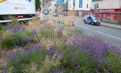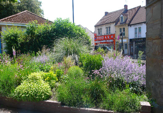 The creation of a Pollinator garden near the entrance to St George Park, Bristol .